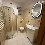 Cuenta con 15 habitaciones equipadas con una plancha y tabla de planchar, además de modernas instalaciones que incluyen TV de pantalla plana con canales vía satélite. Todas las habitaciones tienen un hervidor eléctrico y una nevera, y hay un inodoro separado y una ducha en los baños. El Pensjonat Poranna Rosa Grabowiec ofrece vistas al jardín.